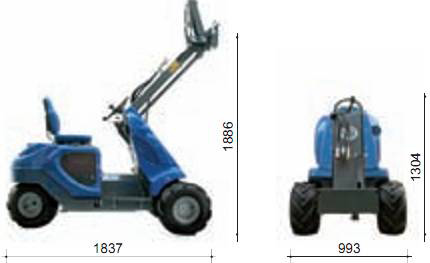 Благодаря запатентованной надежной конструкции, машина способна выполнять работы по уборке, газонокошению, манипуляции с грузами. Машина очень удобна и проста в эксплуатации, а минимальный радиус разворота (близкий к «0») позволяет производить требуемые работы в чрезвычайно узких местах. Машина имеет постоянный гидростатический привод на все 3 колеса, что обеспечивает отличную управляемость, устойчивость и проходимость.