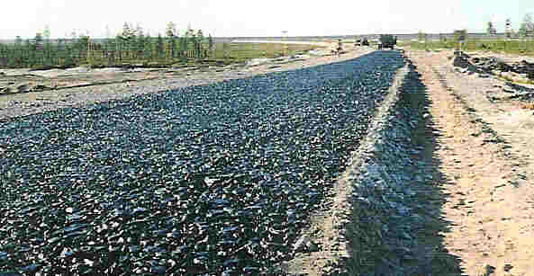 Строительство дорожных одежд методом пропитки эмульсией. Автодорога: Ноябрьск – Н. Уренгой в районе п. Пурпэ (Россия, Ямало-Ненецкий округ, АО «Ноябрьскдорстрой», г. Ноябрьск, Тюменская область)