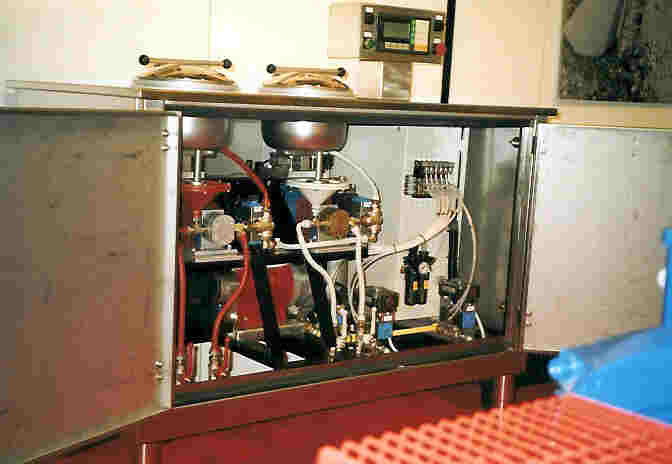 - насос водной фазы: шестеренчатый, двигатель 50-60 Гц; 220 В; 0,25 кВт, привод – бесступенчатый через инвертор для точной дозировки запрограммированного PLC расхода водной фазы