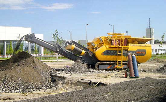 Ïåðåðàáîòêà ñòðîèòåëüíîãî áåòîíà ìîáèëüíûì êîìïëåêñîì RM 70 íà ñòðîéïëîùàäêå .