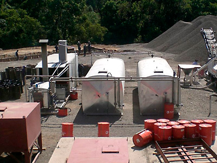 Установка предназначена для плавления чистого и модифицированного битума, поставляемого в твердом виде в металлических бочках объемом по 200 кг. В последствии, уже жидкий битум подается в битумовозы либо непосредственно в производственную линию. Установки характеризуются простотой в обслуживании, высокой надежностью и экономичностью в эксплуатации..